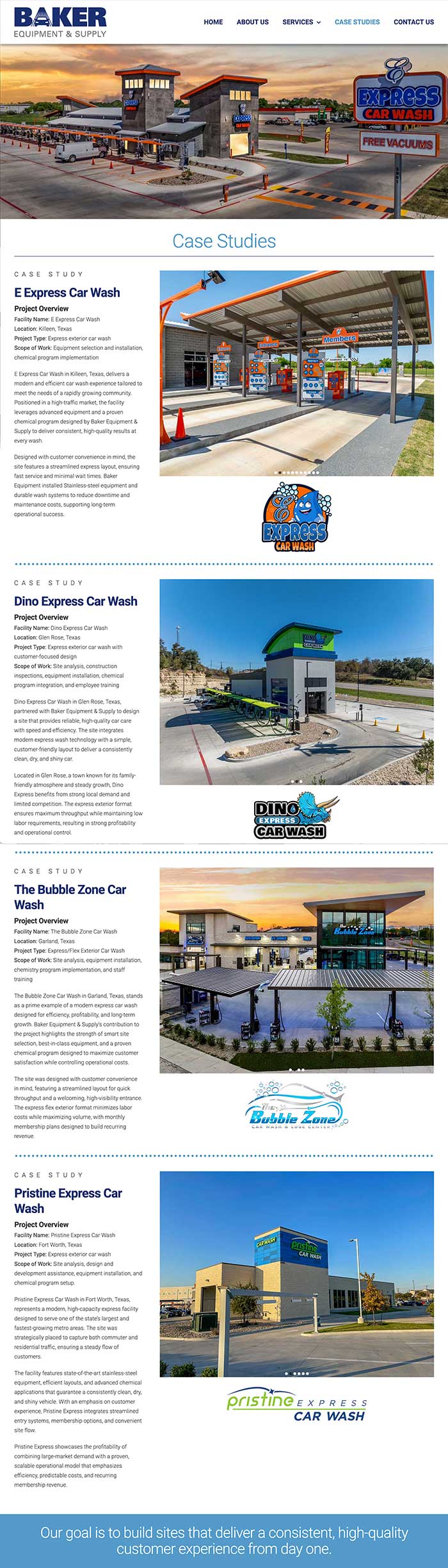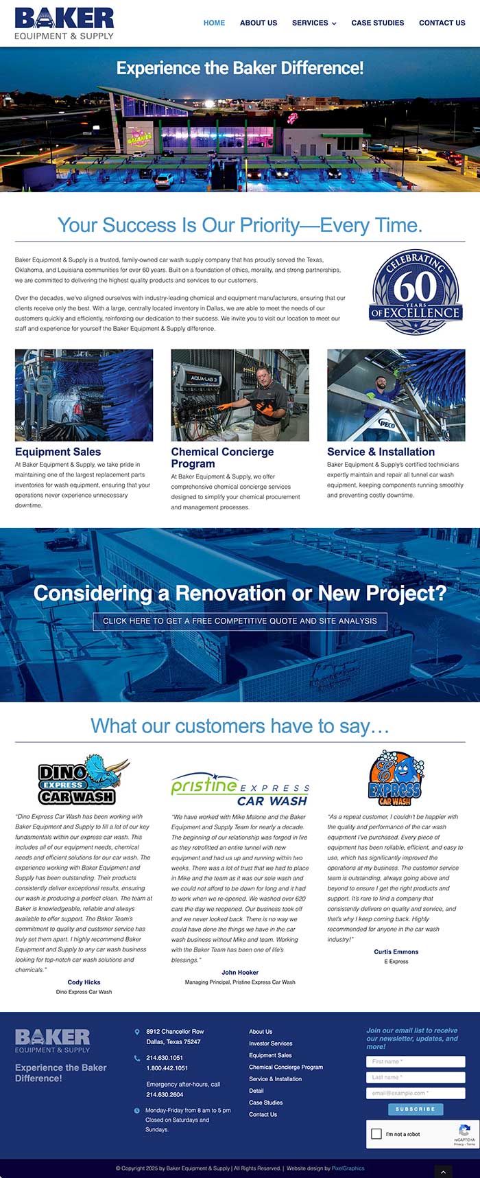 For more than a decade, PixelGraphics has partnered with Baker Equipment & Supply to deliver high-quality design across brochures, advertising, branding, trade show graphics, and catalogs. When Baker decided it was time for a full website redesign, they challenged us to create a clean, professional, and intuitive experience that would perform seamlessly across all devices and platforms. We began by leveraging striking photography from a recently completed brochure, using it to visually tell Baker’s story alongside clear, purposeful messaging. The site highlights Baker’s key service areas and showcases real-world case studies from actual clients, reinforcing their expertise and credibility. The result was a modern, engaging website—and a very happy client.