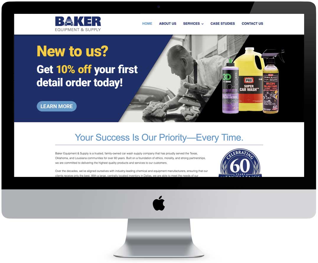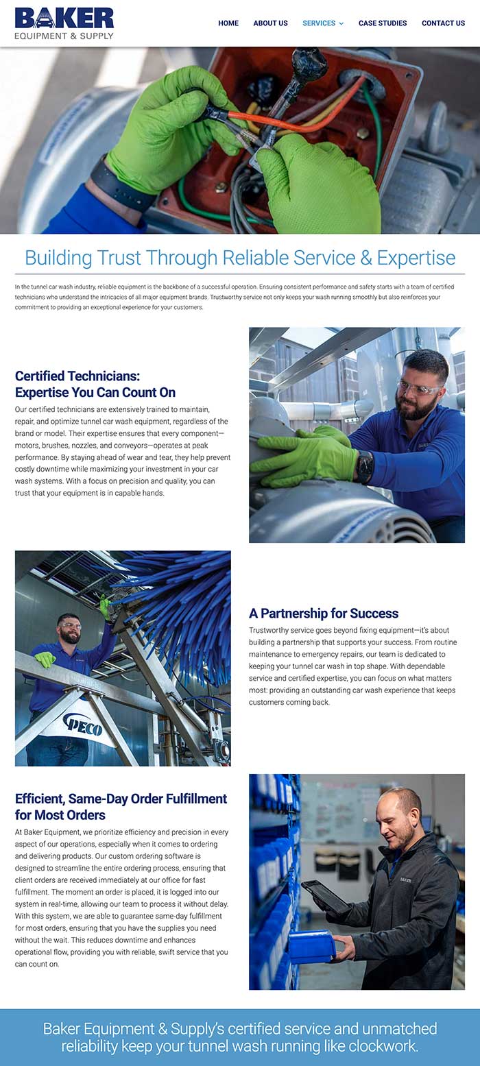 PixelGraphics designs a clean, professional website for Baker Equipment & Supply